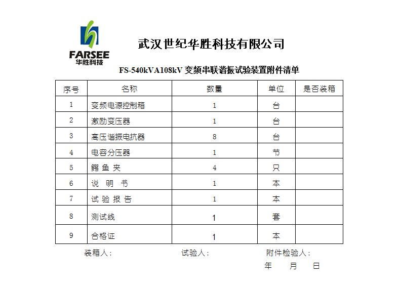 調(diào)頻串聯(lián)諧振試驗裝置主要技術(shù)參數(shù)