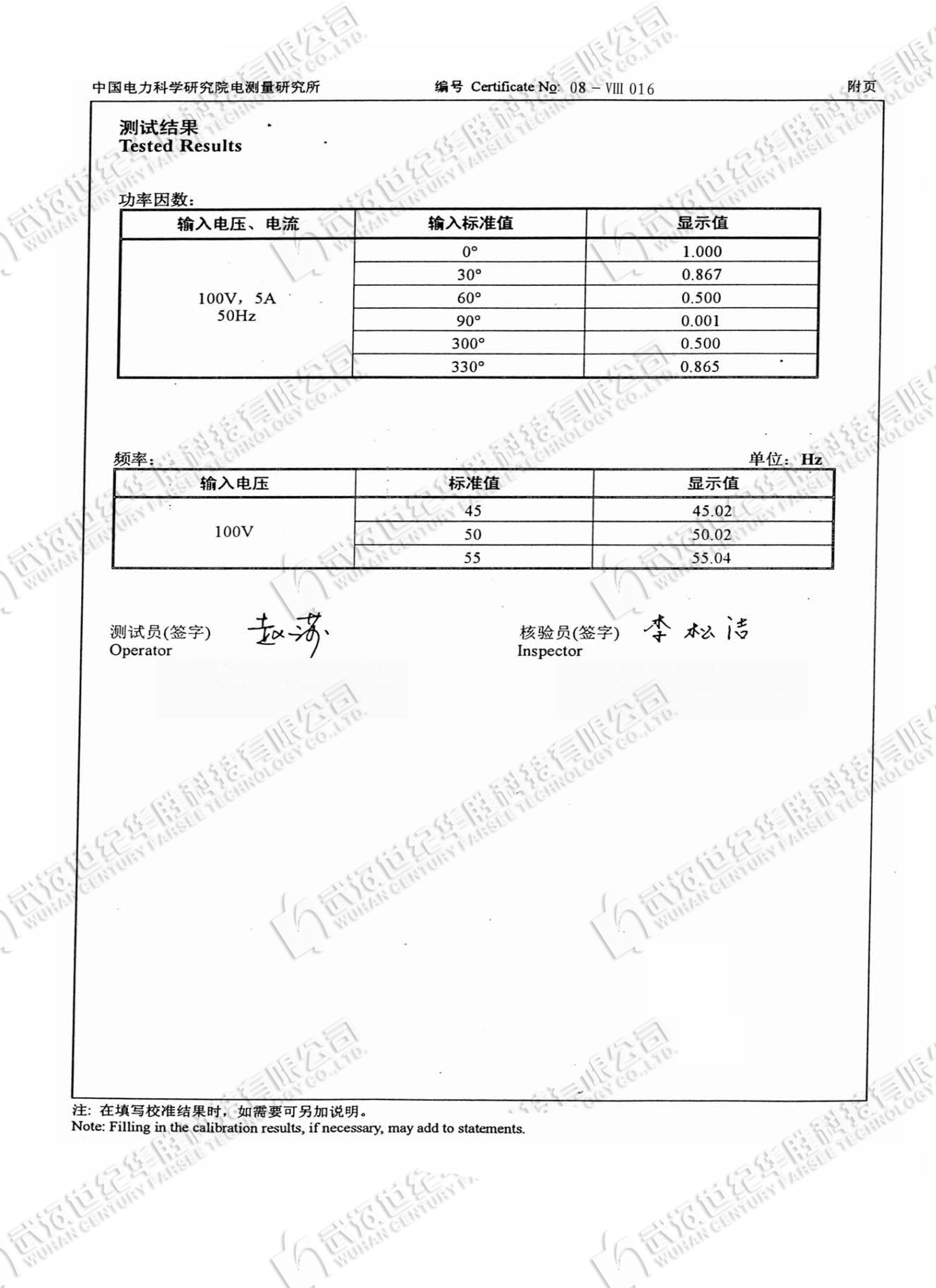 基波電壓和電流之間相位差的測量誤差:≤0.2°