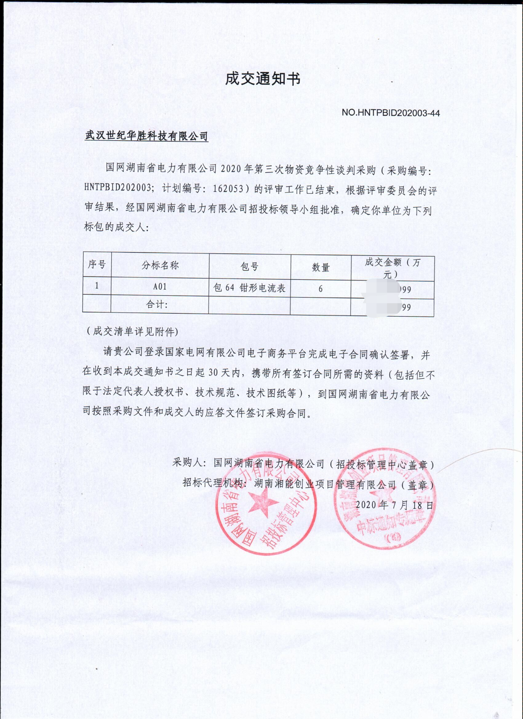 我司在國(guó)網(wǎng)湖南省電力公司2020年第三次物資競(jìng)爭(zhēng)性談判采購(gòu)項(xiàng)目中標(biāo)